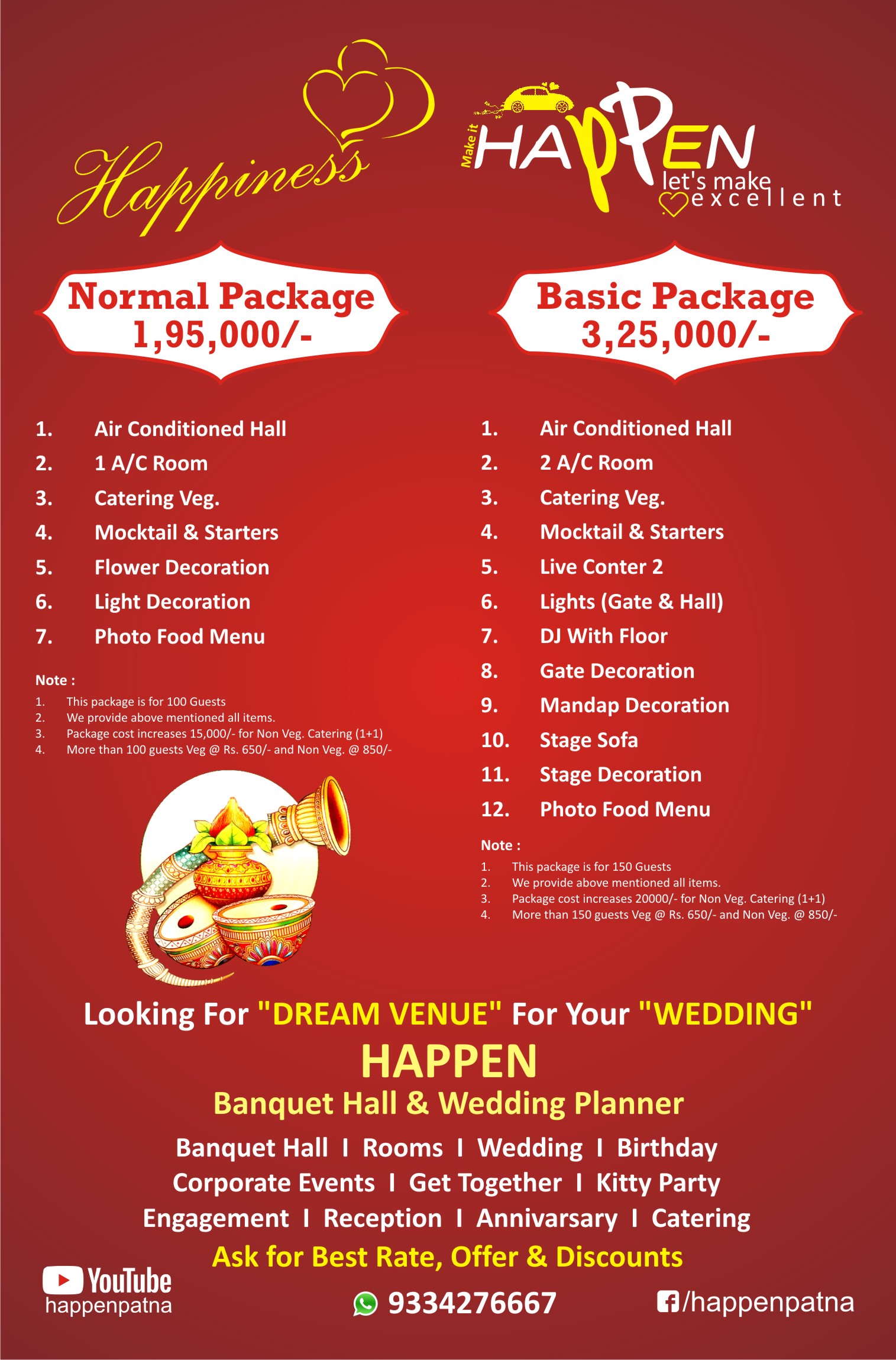 We provide and offer everything a perfect wedding needs, all kind of services ranging from banquet hall in patna to various theme night, start night and catering services. We are here to take your every trobule and difficulty of your wedding and let you enjoy one of the most important momments of your life.
